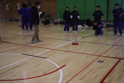 1学年親子行事「カローリング大会」 投稿: 第一中学校-管理者 (17:02) カテゴリー: 今日の出来事 11月29日(土)に、1学年親子行事「カローリング大会」を実施しました。方向や力加減の工夫が難しく、ジェットローラーの操作に苦戦しながらも、チームで協力して試合を楽しむことができました。運営してくださった保護者の皆さん、参加した生徒の皆さん、大変お疲れ様でした。