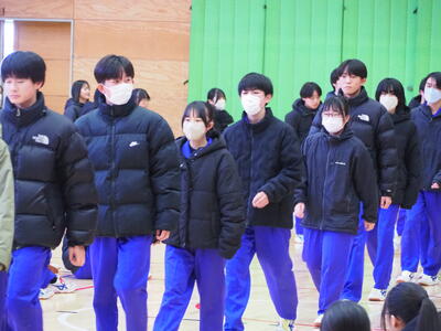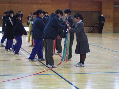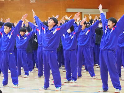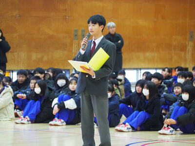 入試激励会を行いました 投稿: 第一中学校-管理者 (16:19) カテゴリー: 生徒会活動 本日の6校時、生徒会企画「3年生入試激励会」が開催しました。 いよいよ年明けには高校入試を控えている3年生の、これまでの努力を讃え、応援したいという想いから、2年生の新生徒会を中心に、1・2年生で激励しました。 今年は学校の住所にもある「鷺」を模して、合格祈願の千羽鶴を3年生に送らせて頂きました。 3年生のみなさん、最後の追い込み時期かと思います。 体調管理も行いながら、目標達成に向けて、頑張ってください。 1・2年生一同、心から応援しています。
