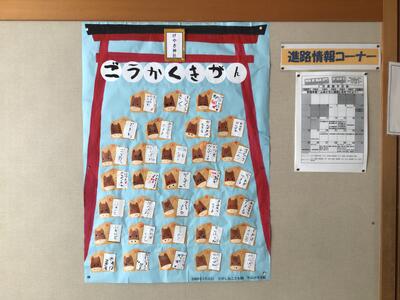 かわいい応援団 投稿: 第一中学校-管理者 (17:25) カテゴリー: 今日の出来事 昨日22日(木)のお昼に、かわいい最強応援団が来校してくれました。東根こども園の年長児の皆さんです。「合格祈願のプレゼント」と「エイ・エイ・オー!」の激励を受けました。いただいたプレゼントは、3学年フロアに、大事に掲示しています。心のこもったプレゼントと応援をありがとうございました。