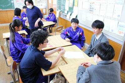 学級お別れ会 投稿: 第一中学校-管理者 (03/12) カテゴリー: 今日の出来事 本日5校時に各学級でお別れ会を行いました。1年間共に過ごしてきた仲間たちと、クイズやカードゲームなどをしながら楽しい時間を過ごしました。どの教室でも笑い声や笑顔があふれ、この1年間の充実ぶりがうかがえる時間でした。 この学級の仲間と過ごせる時間も残り2日。限られた時間を大切に過ごしましょう。