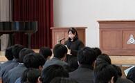 同窓会入会式 投稿: 第一中学校-管理者 (18:44) カテゴリー: 今日の出来事 12日の1校時、同窓会入会式が行われました。 同窓会から副会長の横尾様、事務局長の寒河江様をお迎えしました。 横尾副会長からは「受け止める心を大切にしてほしい。人との出会い、そして自分を大切に、卒業後も進んでいってほしい」という言葉をいただきました。 その後、各クラスの代表生徒の紹介、生徒代表決意の言葉と進行していきました。