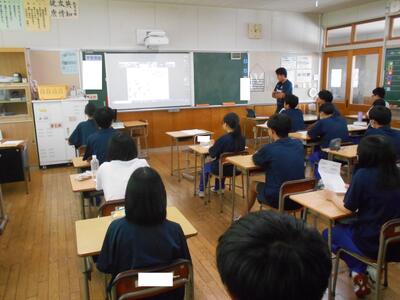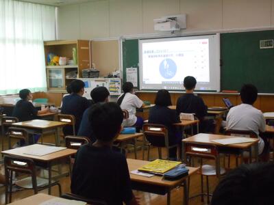 本日、東根市総務部庶務課よりいただいた「東根市人口予想クイズ」の応募案内を全校生に配付しました。私たちが住んでいる東根市の人口は一体何人なのか。ぜひ回答してみてください。