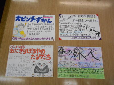 1年生は、国語の時間に「本のポップをつくろう」という課題を行いました。