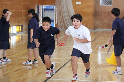 ただのリレーではなく、走り縄跳びやスクワット、2人で手をつなぐといった、速さだけでない競技内容があり、最後まで楽しくレクリエーションを行うことができました。